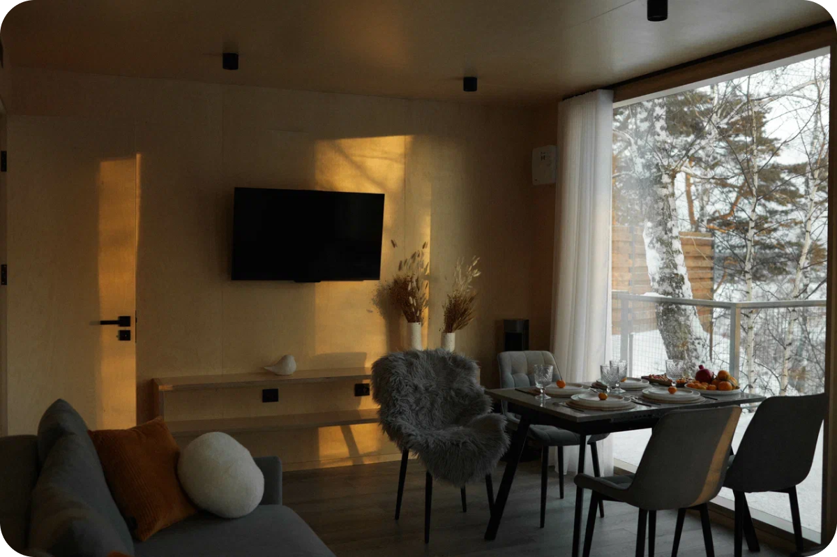 ◦ Обеденный стол-трансформер и 4 мягких стула